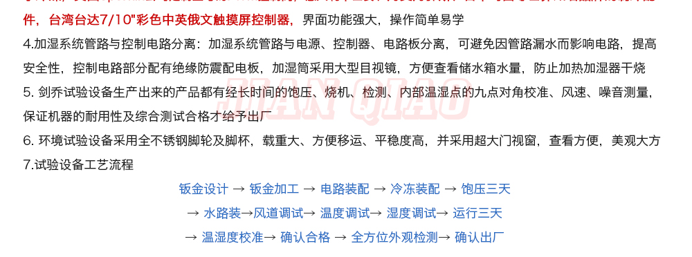 產品型號:JQWI-12(非標定制款) 品牌:劍 喬 用途:步入式恒溫恒濕試驗室可為汽車、大型部件、大尺寸半成品和成品模擬特定的環(huán)境條件。如樣品評估、研發(fā)測試生產測試,加速壓力測試,可靠性測試,故障分析,以及其他需要環(huán)境模咨詢熱線:13829135130