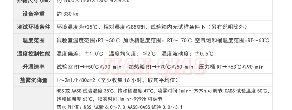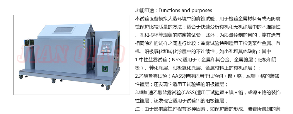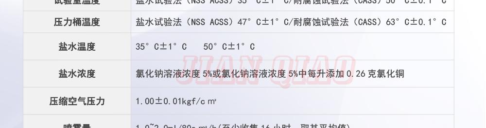 產(chǎn)品型號(hào):按需選型 品牌:劍 喬 用途:鹽霧試驗(yàn)箱可分為:溫度/濕度/鹽霧復(fù)合式試驗(yàn)機(jī),步入式鹽干濕試驗(yàn)室,步入式鹽水噴霧試驗(yàn)室,鹽水噴霧試驗(yàn)機(jī),可程式鹽水噴霧試驗(yàn)機(jī),電腦式鹽水噴霧試驗(yàn)機(jī),精密型鹽水噴霧試咨詢熱線:13829135130