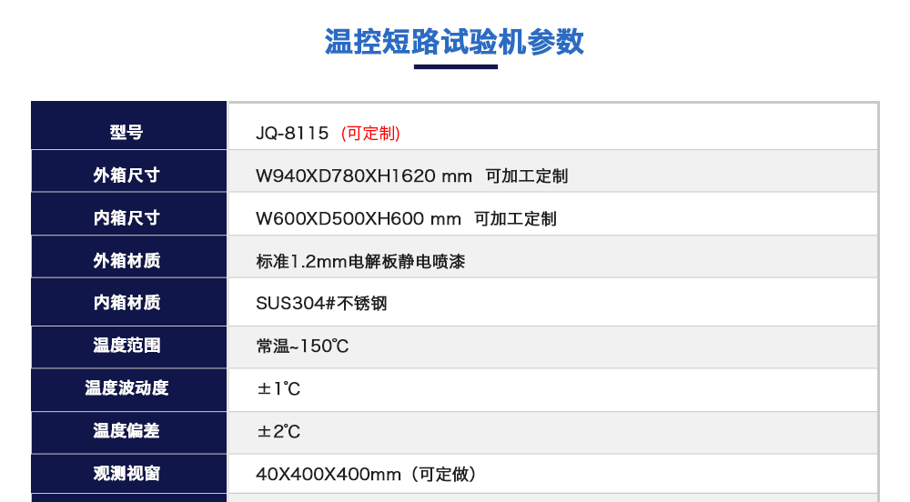 產(chǎn)品型號:JQ-8115(可定制) 品牌:劍 喬 用途:溫控型電池短路試驗機綜合多種電池短路試驗標準要求而設計按標準要求短路裝置必須符合內(nèi)阻范圍≤5mΩ從而獲得試驗要求的最大短路電流咨詢熱線:13829135130