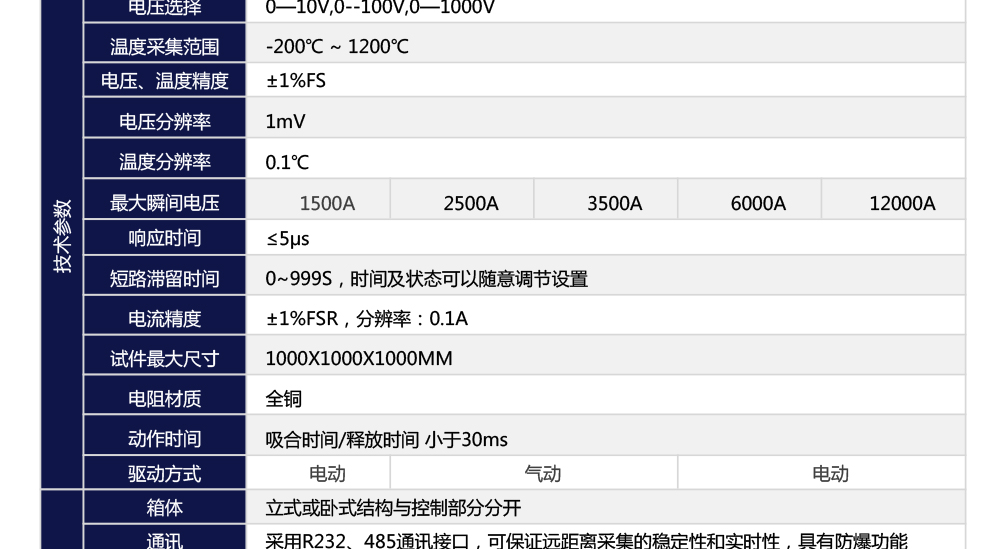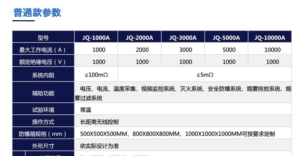 產(chǎn)品型號:JQ-5000A 品牌:劍 喬 用途:大電流短路試驗裝置綜合多種電池短路試驗標準要求而設(shè)計,按標準要求短路裝置必須符合內(nèi)阻范圍≤5mΩ,從而獲得試驗要求的最大短路電流;另外在短路裝置的線路設(shè)計上也須能夠承咨詢熱線:13829135130