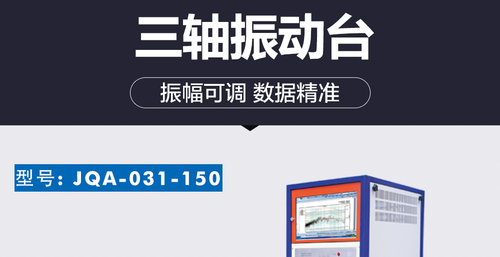 產(chǎn)品簡介:三軸振動臺(型號:JQA-031-150)是由:振動臺、功率放大器和振動測控制系統(tǒng)組成了一套完整的振動試驗系統(tǒng),依照相關的國家和國際標準(如:MIL-STD、DIN、ISO、ASTM、IEC、ISTA、GB、GJB、JIS、BS等)在實驗室條件下模擬振動環(huán)境,測試各種振動試驗應用領域中的沖擊強度和可靠性。在實驗室借助振動試驗機系統(tǒng)可以模擬再現(xiàn)正弦、隨機、諧振搜尋與駐留、典型沖擊和道路仿真等模式。對于產(chǎn)品的質量保證、新品研發(fā)都是必不可少的。