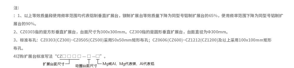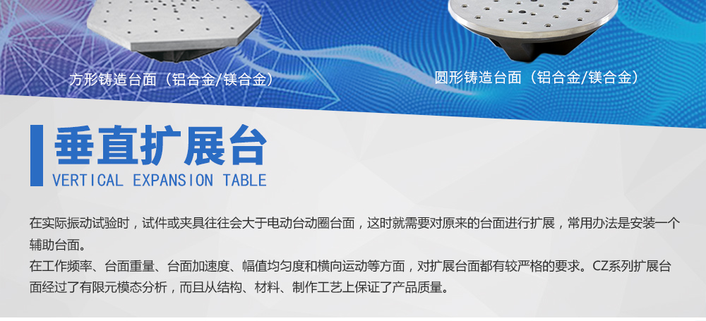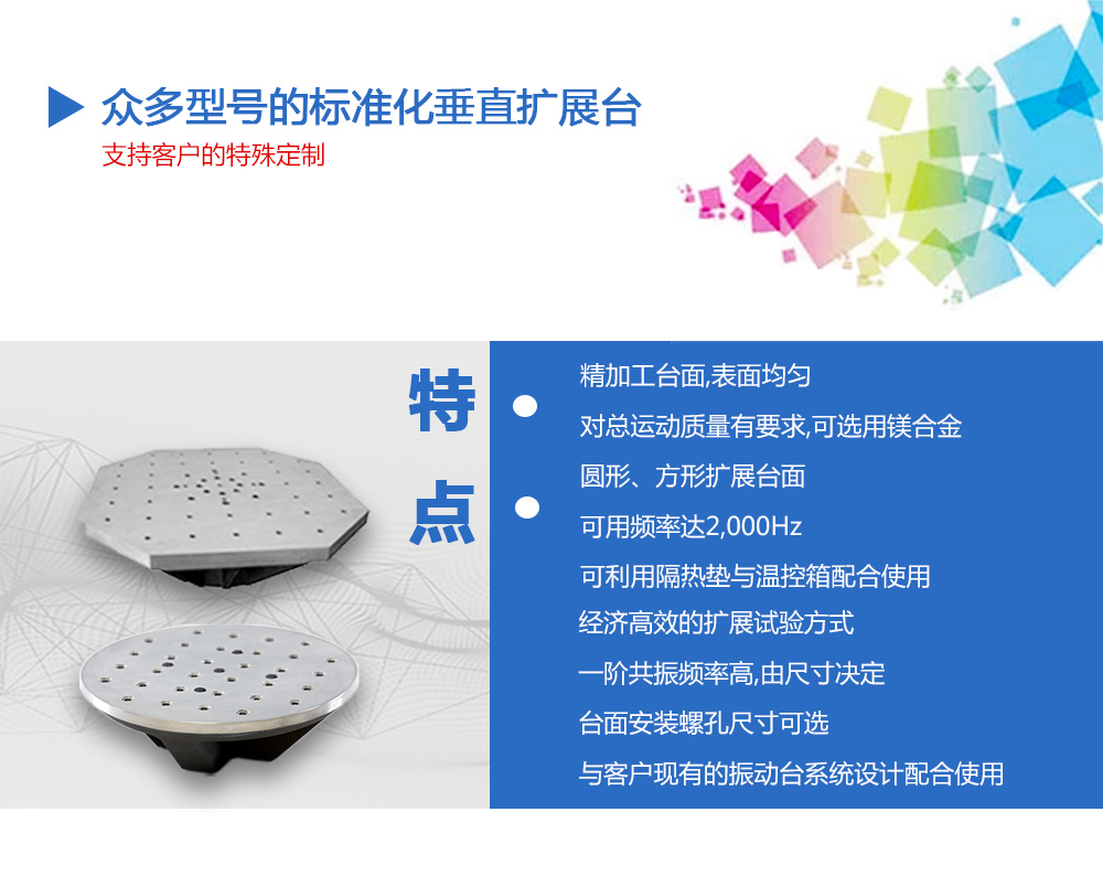 產(chǎn)品型號:CZ0303 品牌:劍 喬 用途:供應眾多型號的標準化垂直水平擴展臺,而且支持客戶的特殊定制,從而滿足客戶對振動臺性能擴展的需求。在實際振動試驗時,試件或夾具往往會大于電動臺動圈臺面,這時就需要對咨詢熱線:13829135130